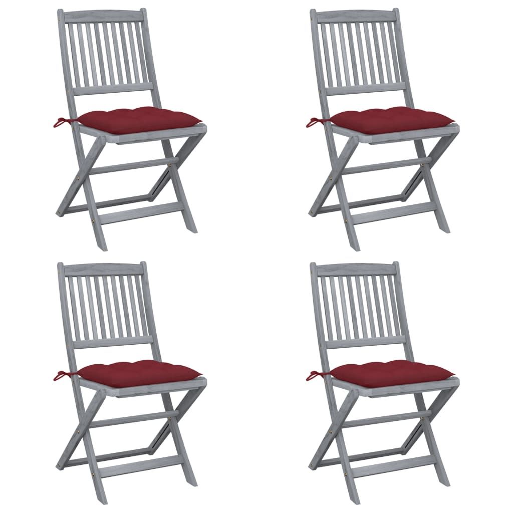 Składane krzesła ogrodowe, 4 szt., poduszki, drewno akacjowe