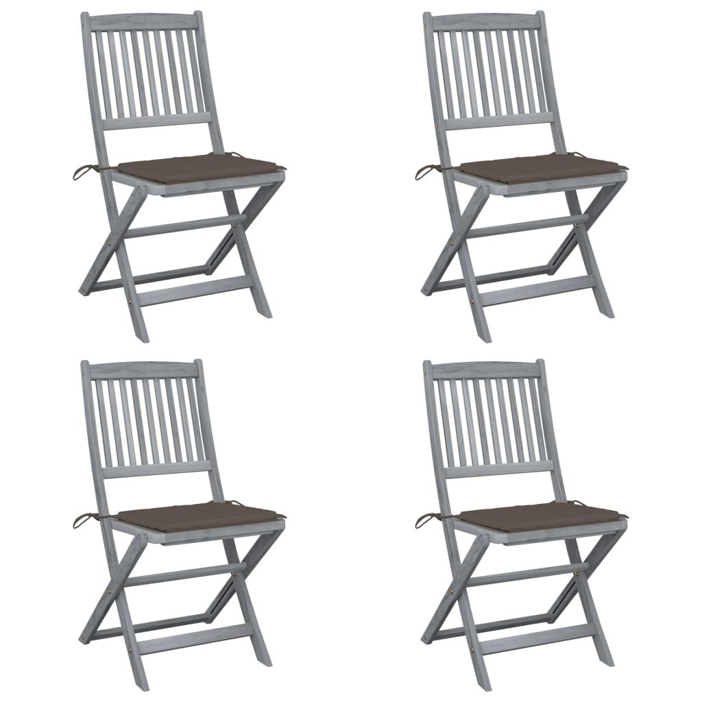 Składane krzesła ogrodowe, 4 szt., poduszki, drewno akacjowe