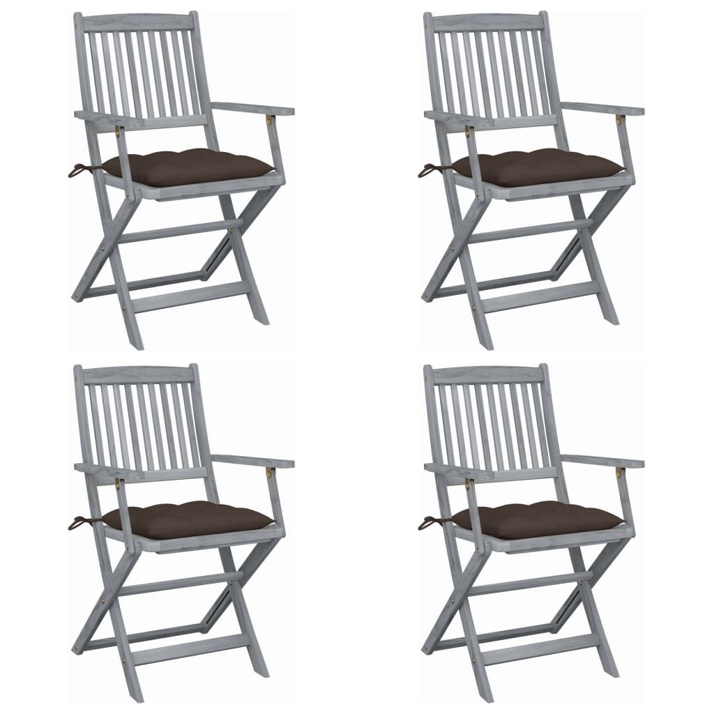 Składane krzesła ogrodowe, 4 szt., poduszki, drewno akacjowe