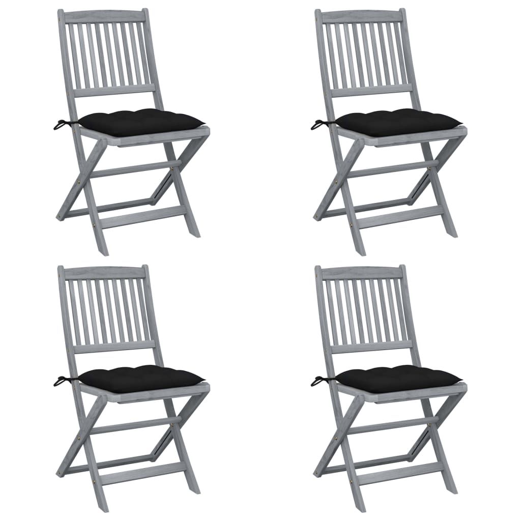 Składane krzesła ogrodowe, 4 szt., poduszki, drewno akacjowe