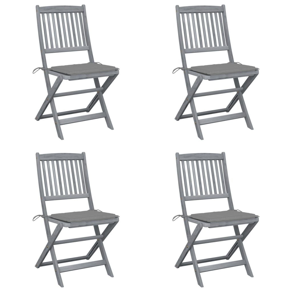 Składane krzesła ogrodowe, 4 szt., poduszki, drewno akacjowe