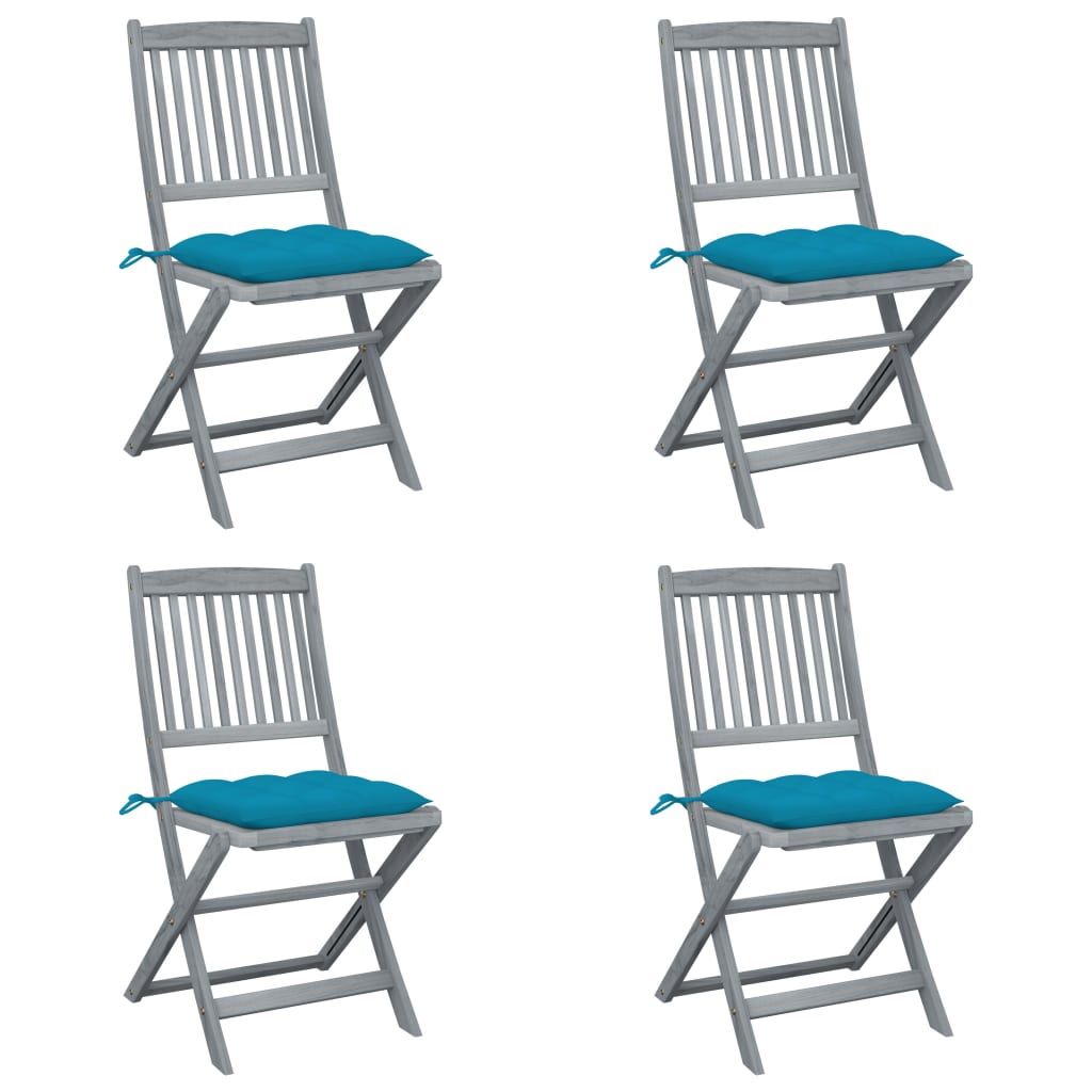Składane krzesła ogrodowe, 4 szt., poduszki, drewno akacjowe