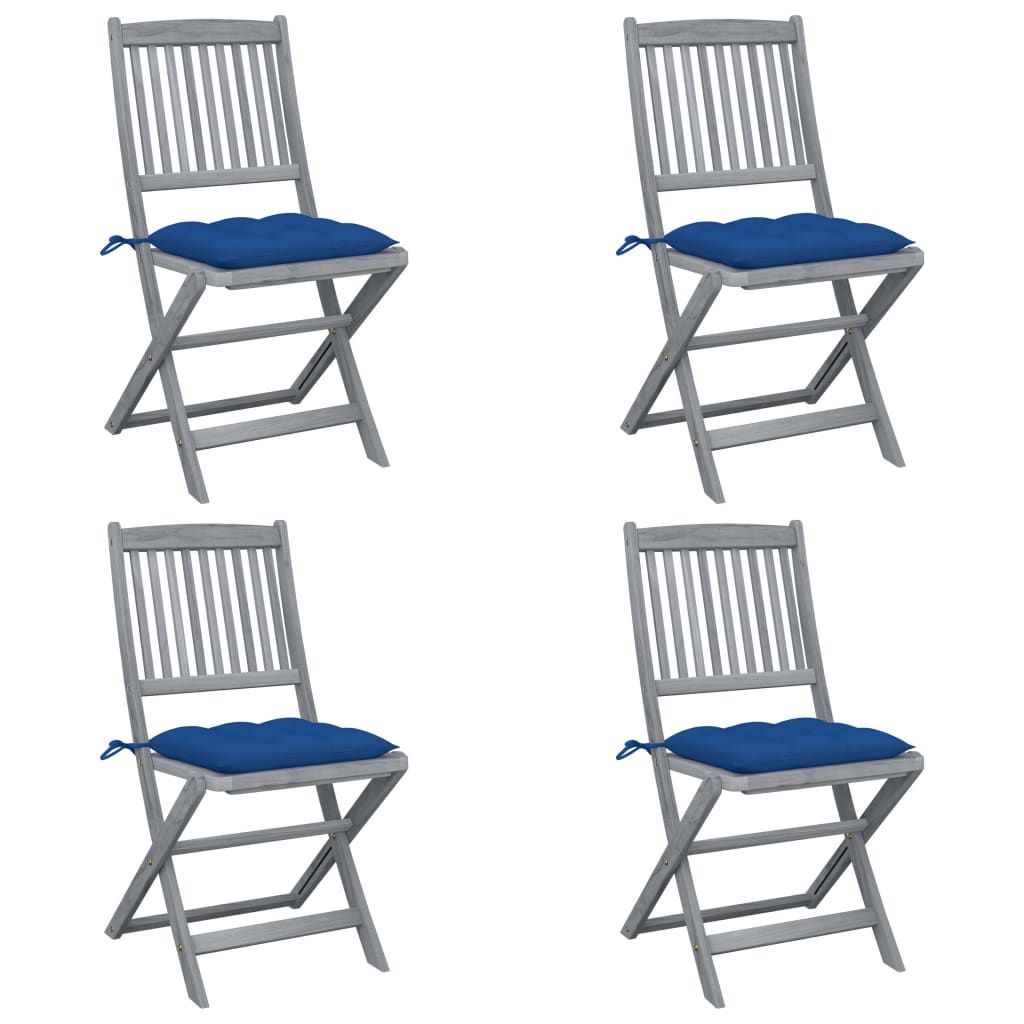 Składane krzesła ogrodowe, 4 szt., poduszki, drewno akacjowe