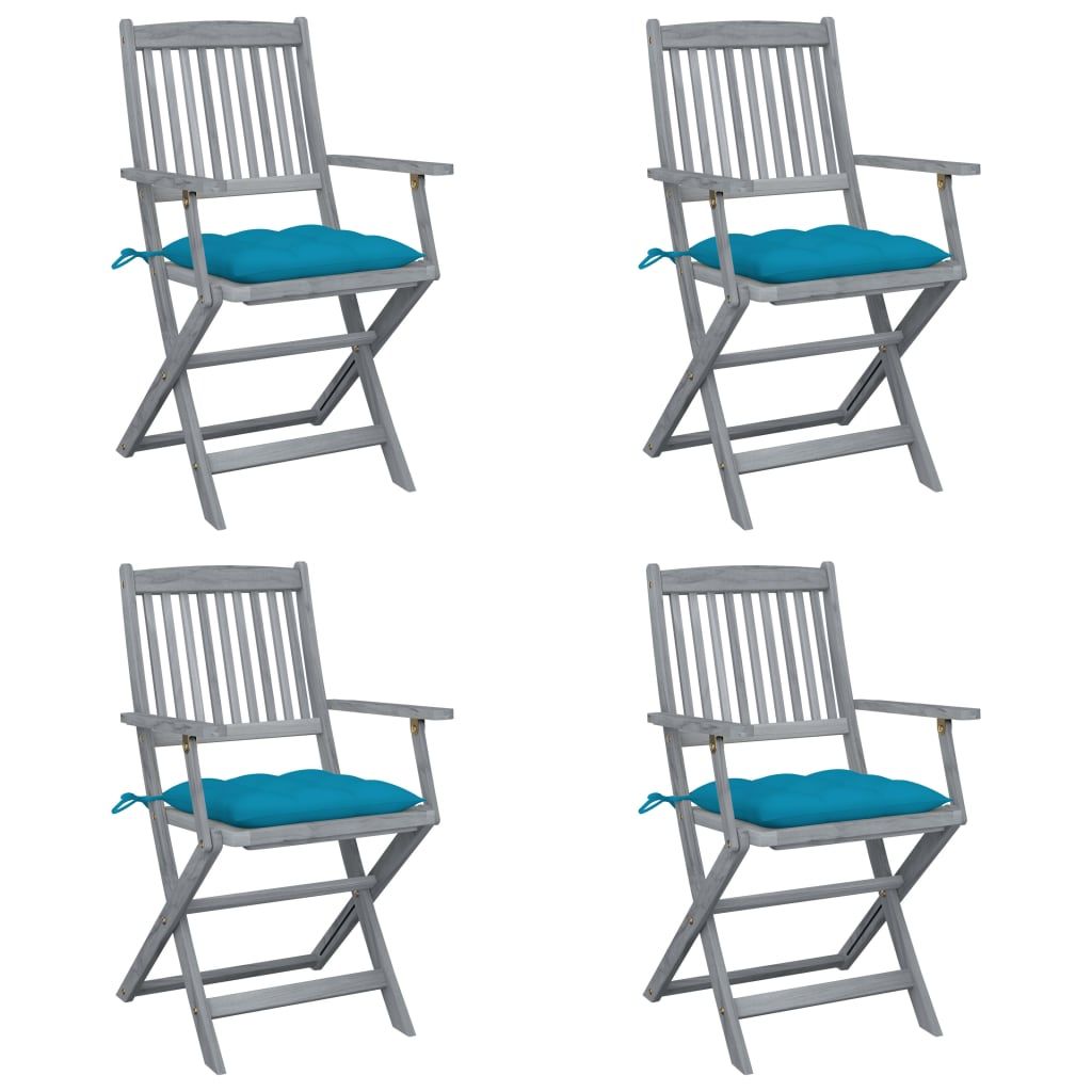 Składane krzesła ogrodowe, 4 szt., poduszki, drewno akacjowe