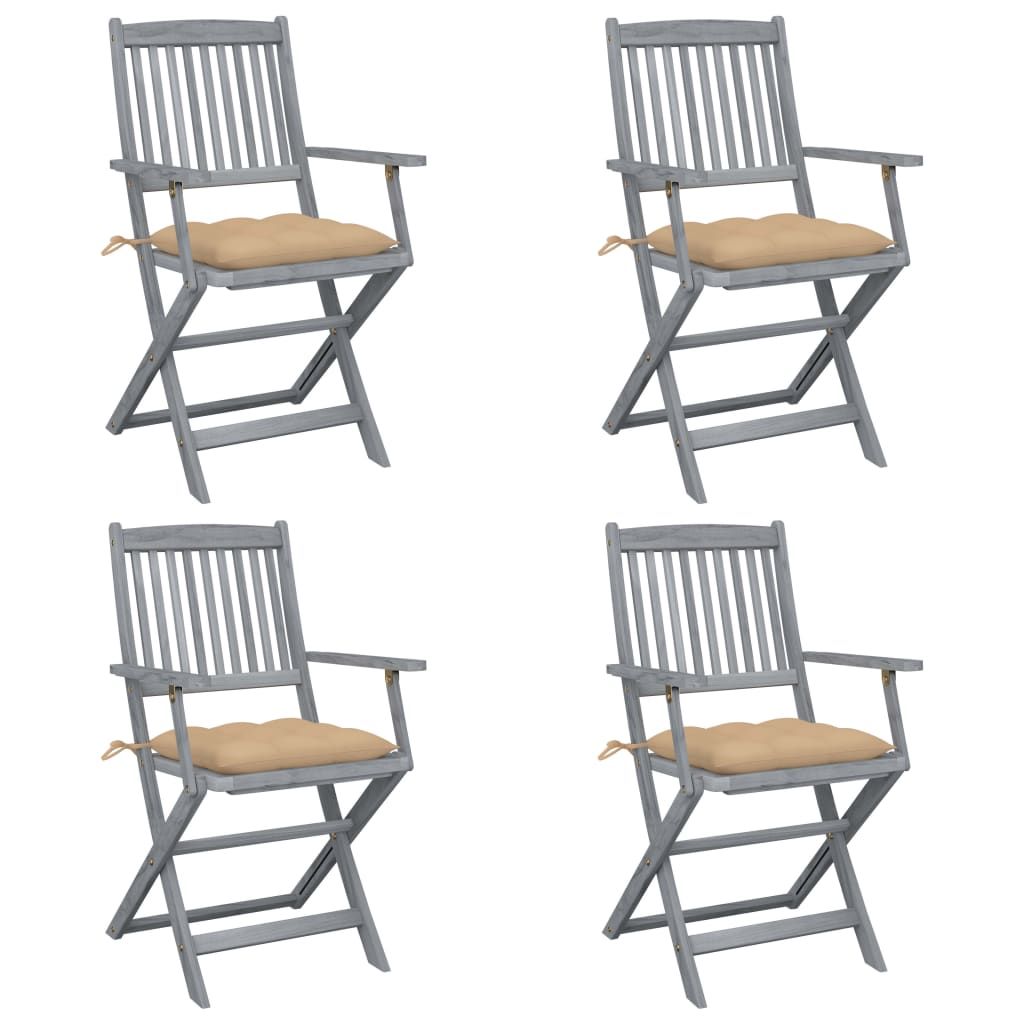 Składane krzesła ogrodowe, 4 szt., poduszki, drewno akacjowe