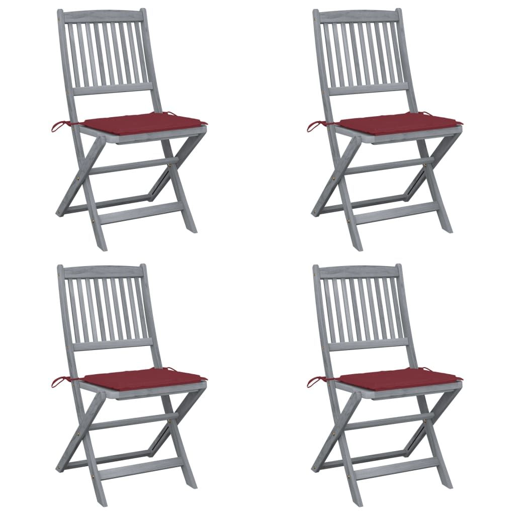 Składane krzesła ogrodowe, 4 szt., poduszki, drewno akacjowe