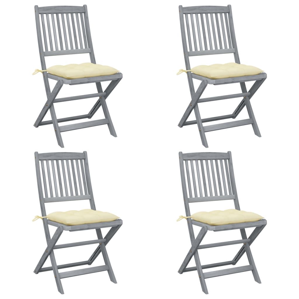 Składane krzesła ogrodowe, 4 szt., z poduszkami, akacjowe
