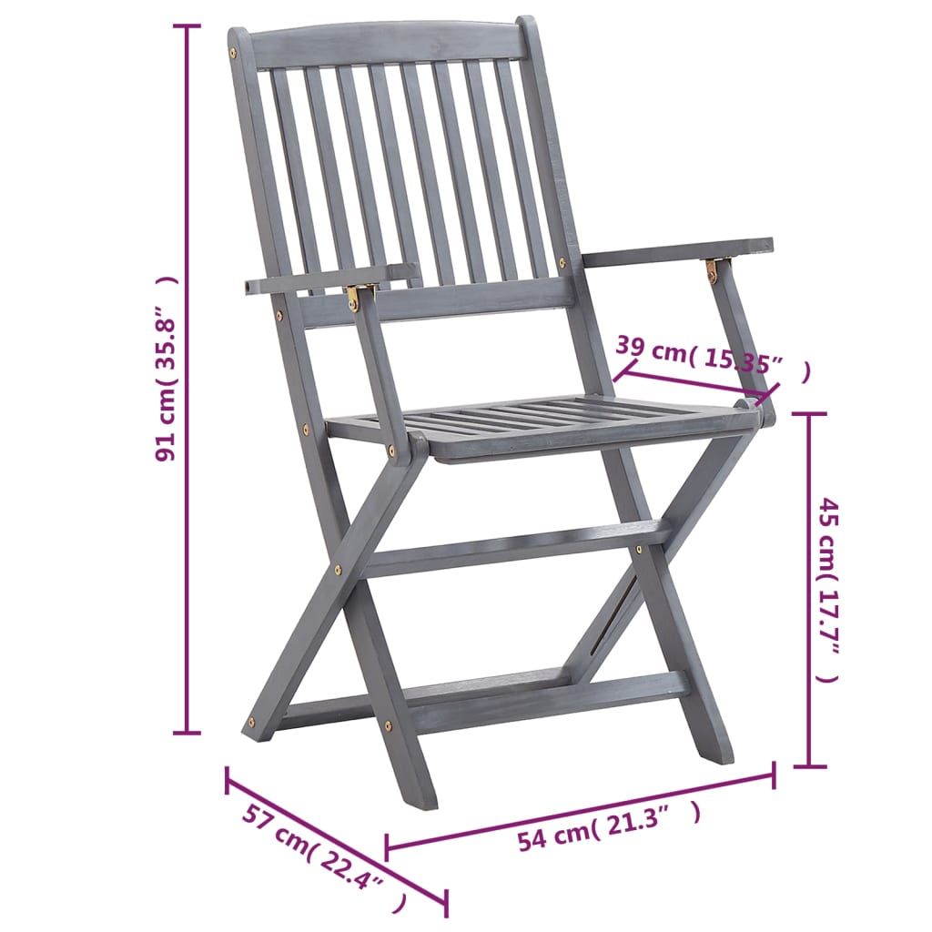 Ten zestaw nowoczesnych, drewnianych krzeseł jadalnianych z poduszkami wniesie odrobinę naturalnego stylu do Twojego ogrodu, tarasu lub patio. To doskonały wybór do spożywania posiłków. Krzesła stołowe wykonano z litego drewna akacjowego - tropikalnego, twardego drewna - dzięki czemu są odporne na warunki atmosferyczne i trwałe na lata użytkowania. Lite drewno akacjowe jest wytrzymałe na obciążenia oraz upływ czasu. Wykończoną w szarym kolorze powierzchnię można łatwo wyczyścić przy pomocy wilgotnej ściereczki. Krzesła można złożyć, aby zaoszczędzić miejsce, gdy nie są używane. Co więcej dołączone poduszki oferują większy komfort podczas wypoczynku lub posiłku. Każda poduszka zawiera dwa zestawy sznurków, które służą do przymocowania jej do krzesła.