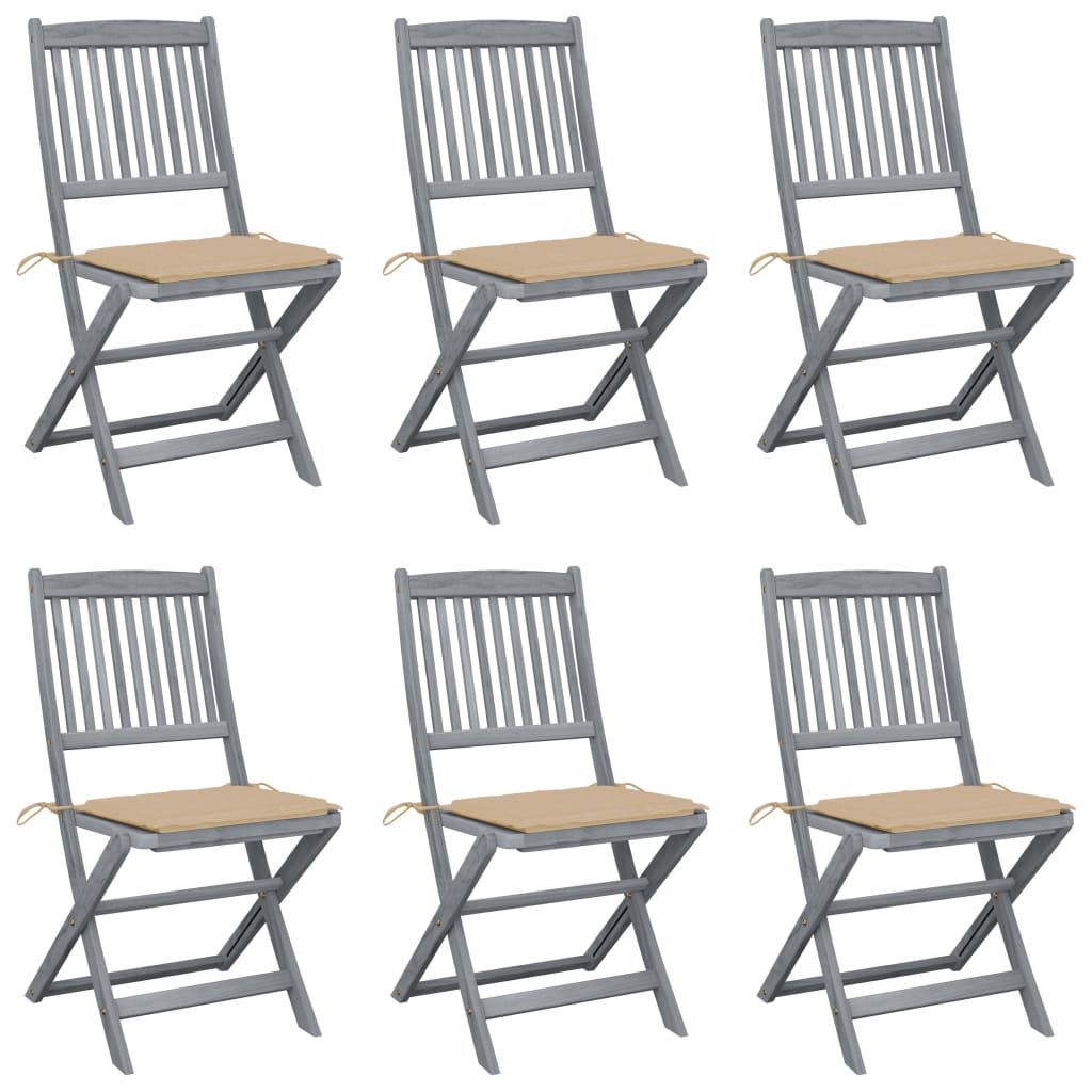 Składane krzesła ogrodowe, 6 szt., poduszki, drewno akacjowe