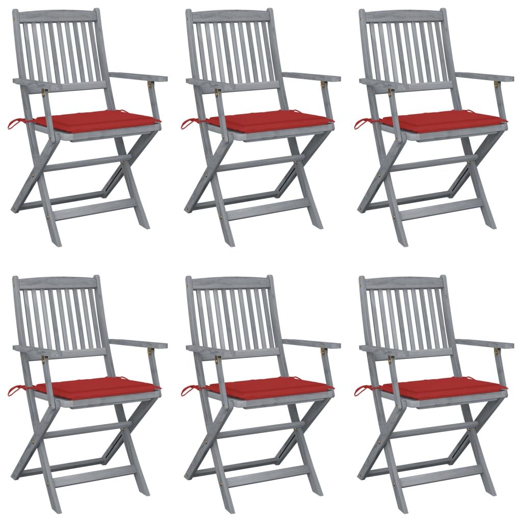 Składane krzesła ogrodowe, 6 szt., poduszki, drewno akacjowe