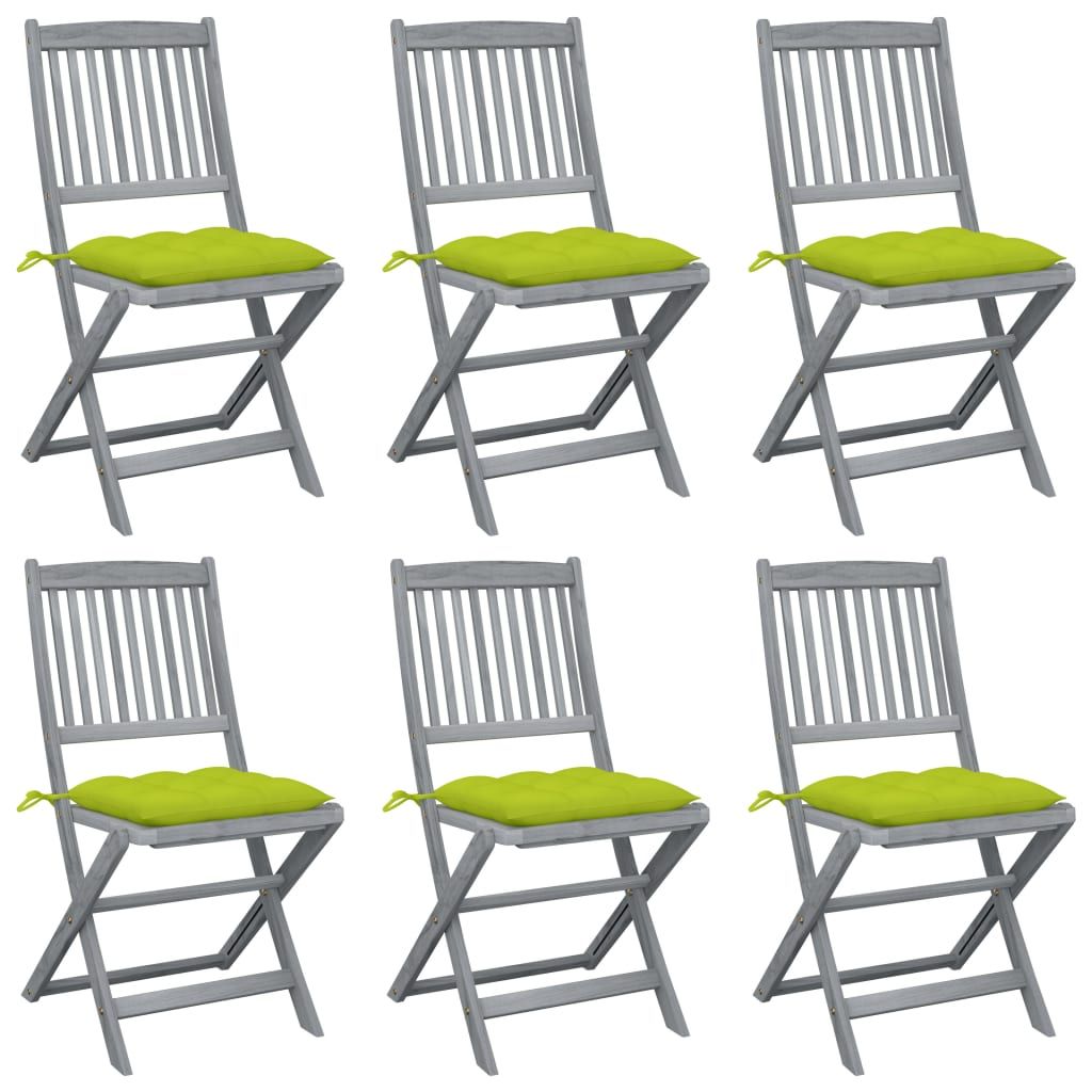 Składane krzesła ogrodowe, 6 szt., poduszki, drewno akacjowe