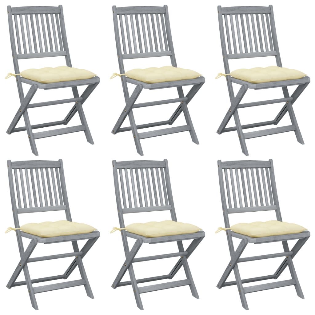 Składane krzesła ogrodowe, 6 szt., poduszki, drewno akacjowe