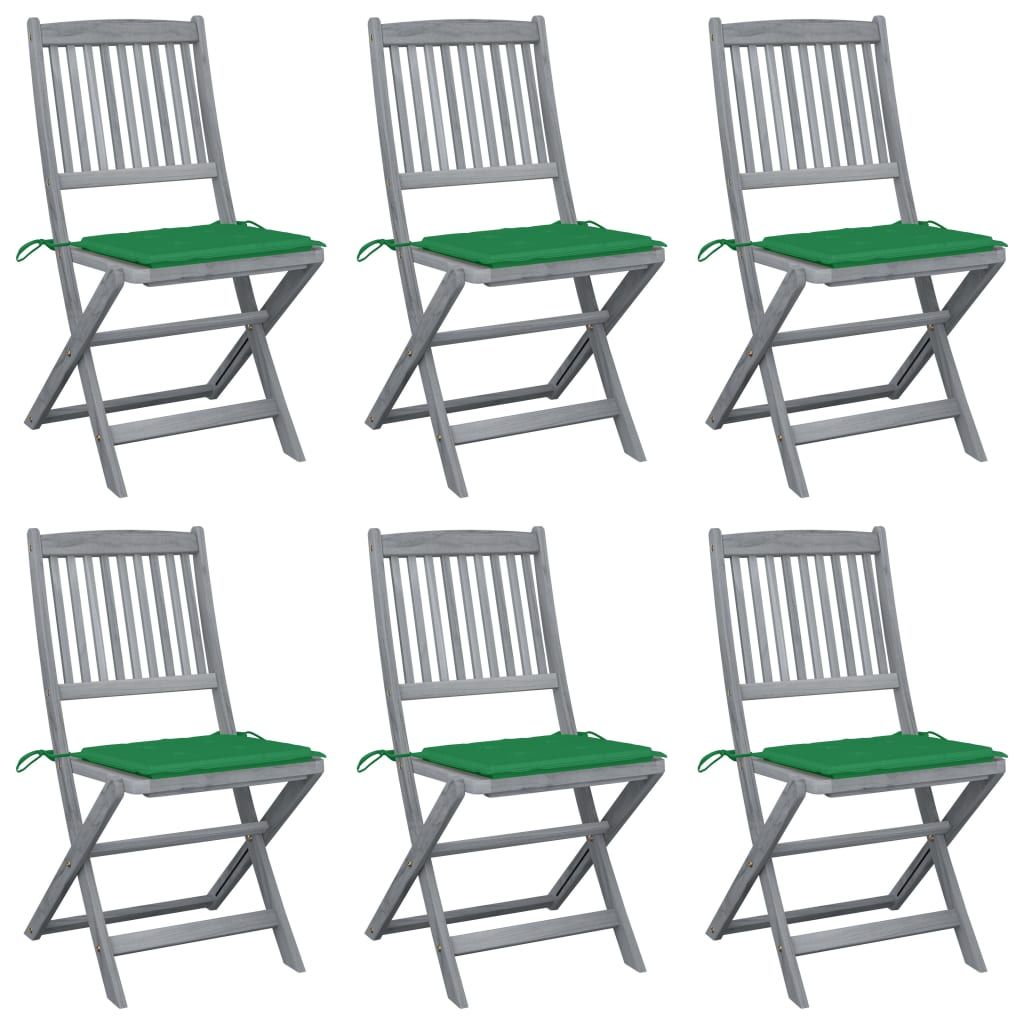Składane krzesła ogrodowe, 6 szt., poduszki, drewno akacjowe