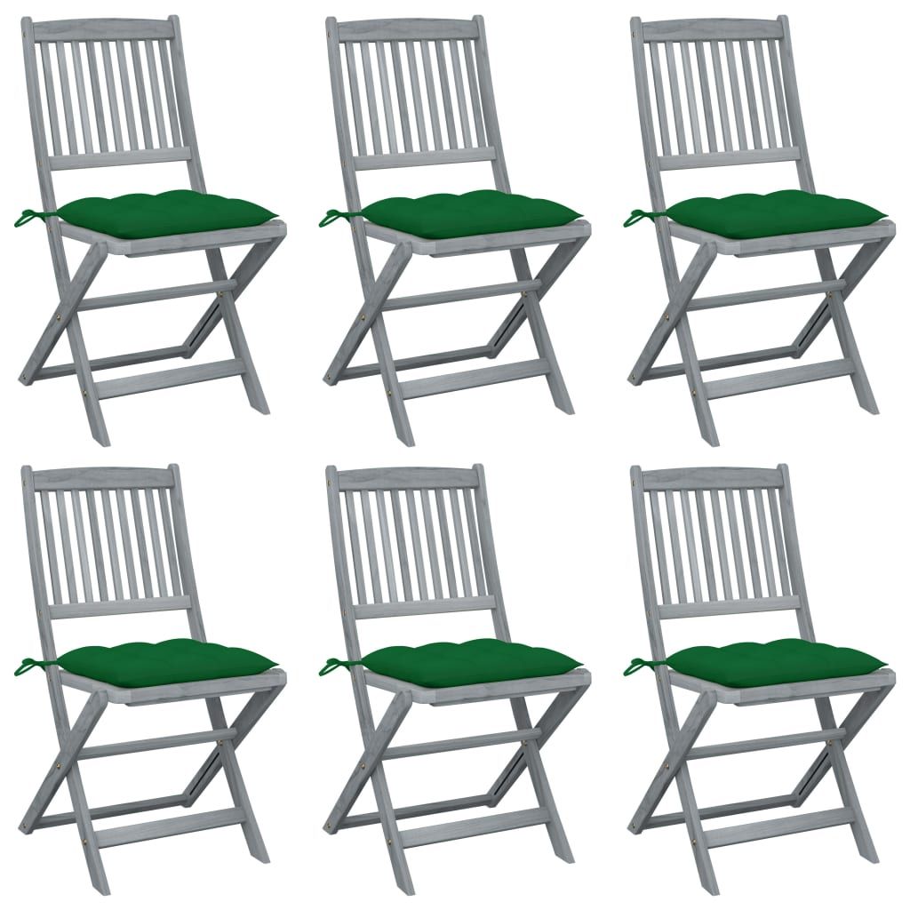 Składane krzesła ogrodowe, 6 szt., poduszki, drewno akacjowe