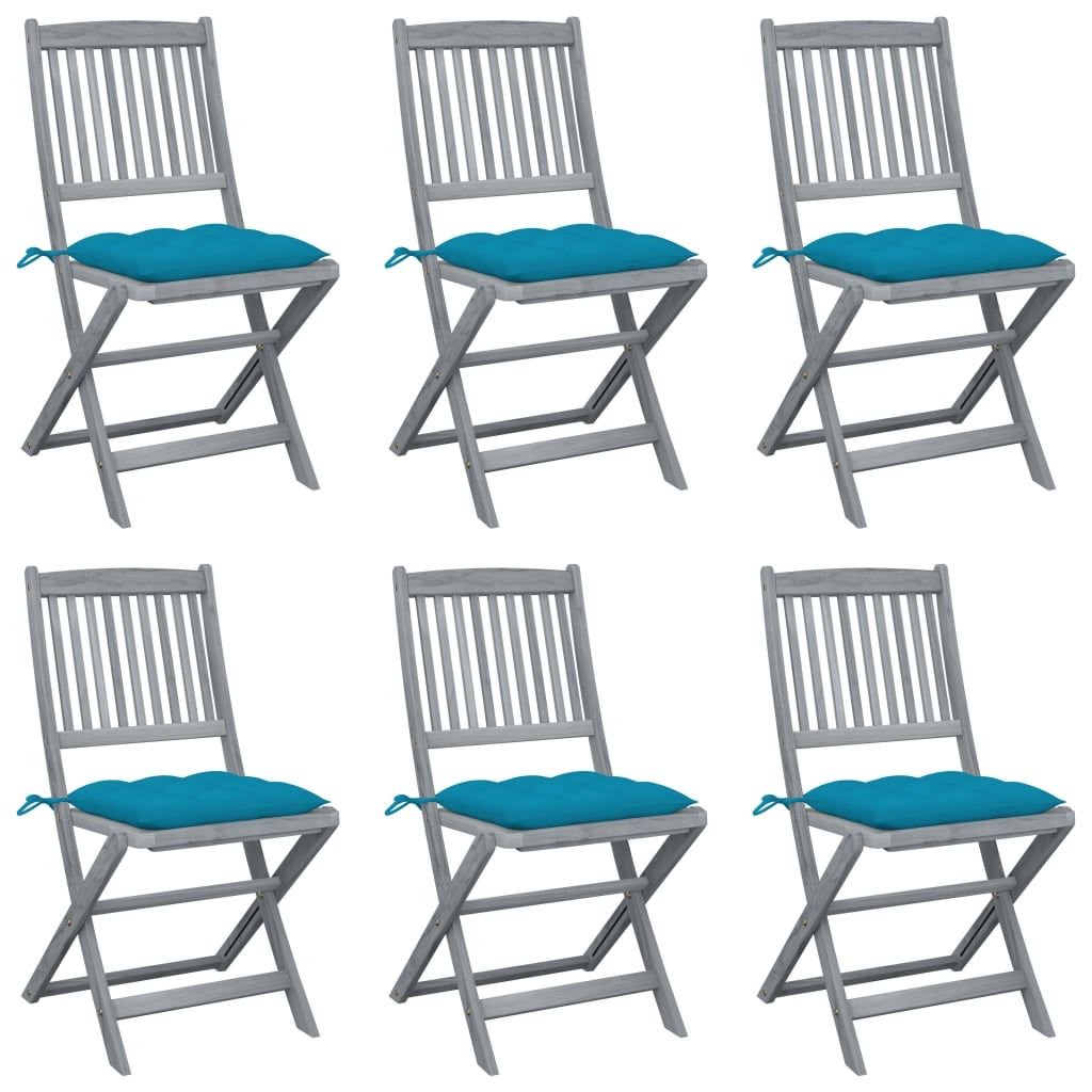 Składane krzesła ogrodowe, 6 szt., poduszki, drewno akacjowe