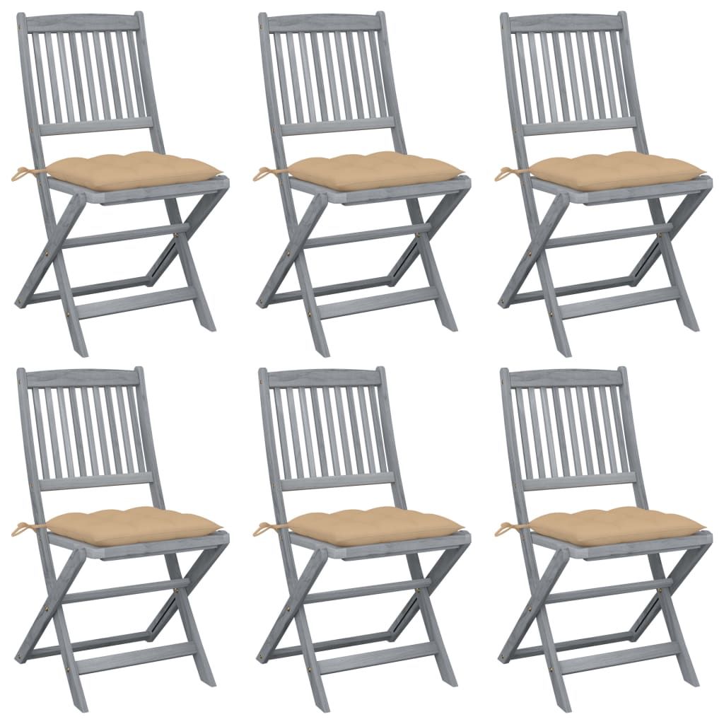 Składane krzesła ogrodowe, 6 szt., poduszki, drewno akacjowe