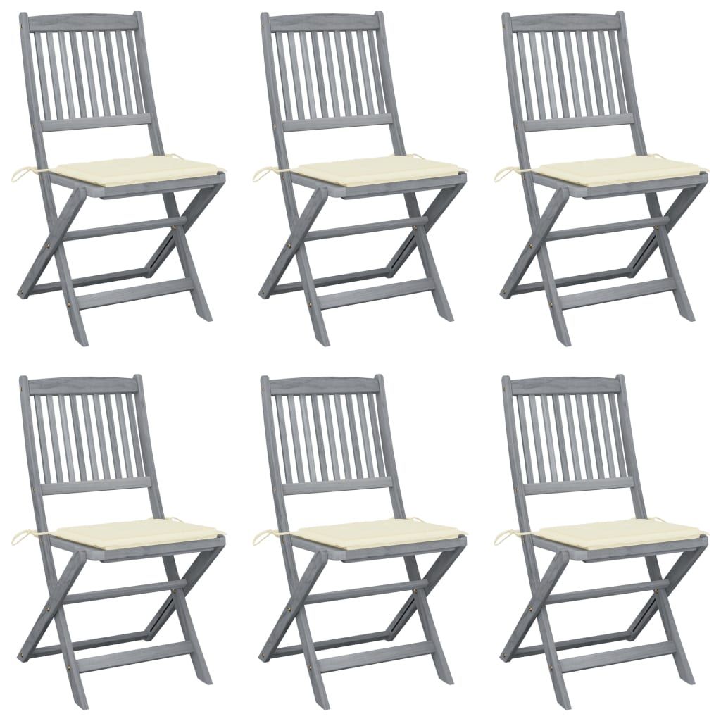 Składane krzesła ogrodowe, 6 szt., poduszki, drewno akacjowe