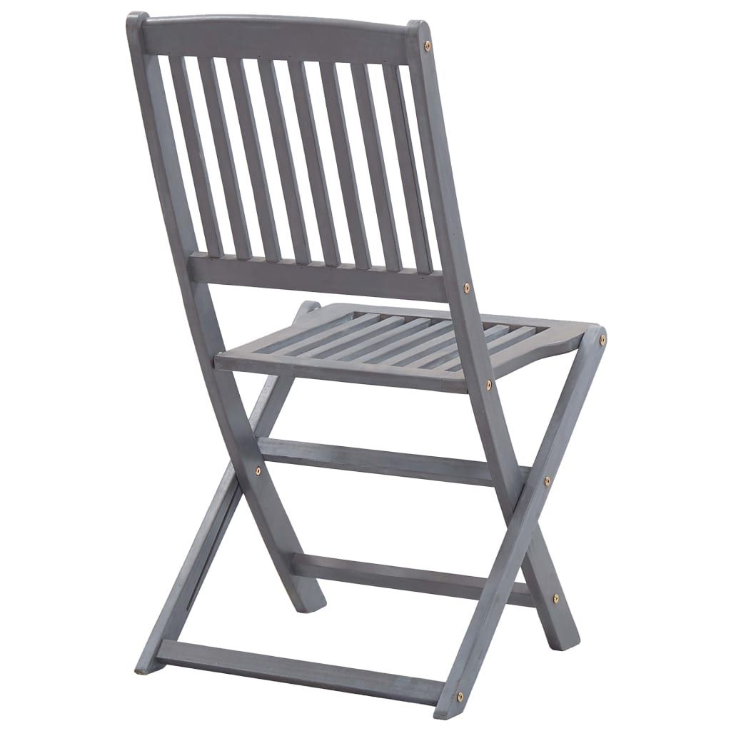 Ten zestaw nowoczesnych, drewnianych krzeseł jadalnianych z poduszkami wniesie odrobinę naturalnego stylu do Twojego ogrodu, tarasu lub patio. To doskonały wybór do spożywania posiłków. Krzesła stołowe wykonano z litego drewna akacjowego - tropikalnego, twardego drewna - dzięki czemu są odporne na warunki atmosferyczne i trwałe na lata użytkowania. Lite drewno akacjowe jest wytrzymałe na obciążenia oraz upływ czasu. Wykończoną w szarym kolorze powierzchnię można łatwo wyczyścić przy pomocy wilgotnej ściereczki. Krzesła można złożyć, aby zaoszczędzić miejsce, gdy nie są używane. Co więcej dołączone poduszki oferują większy komfort podczas wypoczynku lub posiłku. Każda poduszka zawiera dwa zestawy sznurków, które służą do przymocowania jej do krzesła.