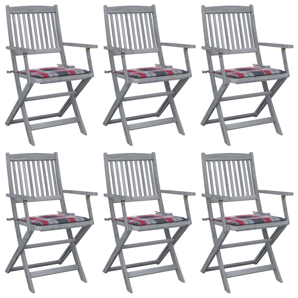 Składane krzesła ogrodowe, 6 szt., poduszki, drewno akacjowe