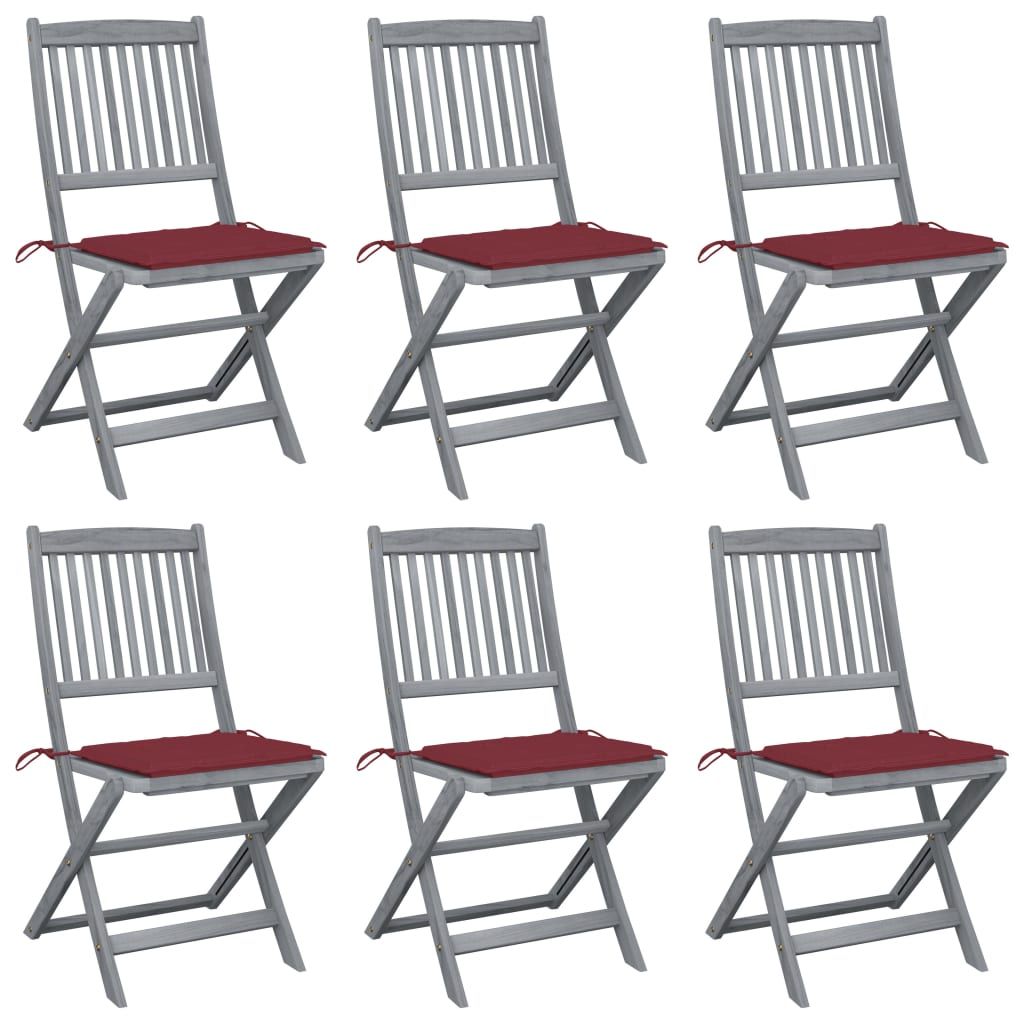 Składane krzesła ogrodowe, 6 szt., poduszki, drewno akacjowe