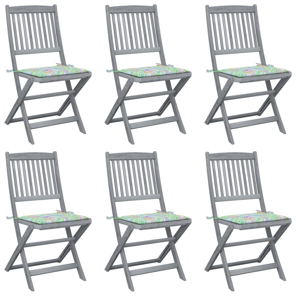 Składane krzesła ogrodowe, 6 szt., poduszki, drewno akacjowe