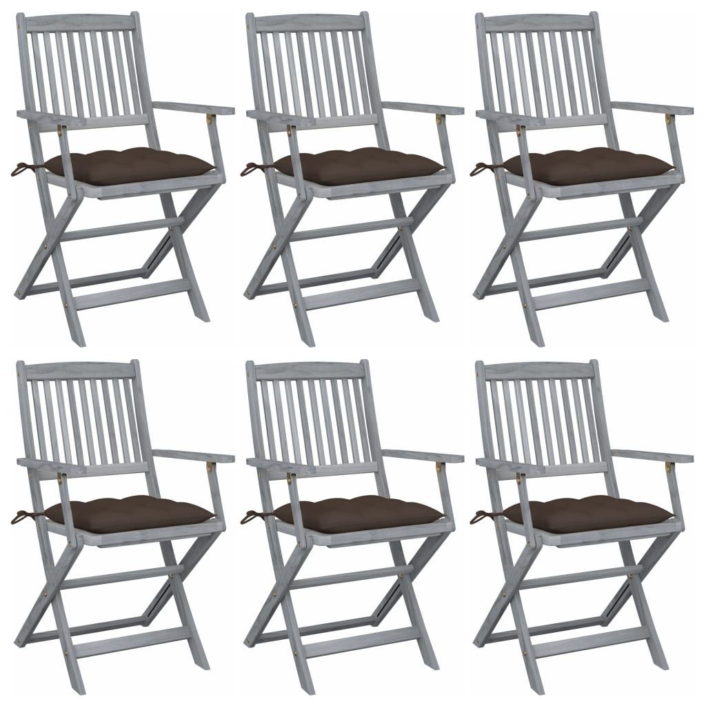 Składane krzesła ogrodowe, 6 szt., z poduszkami, akacjowe