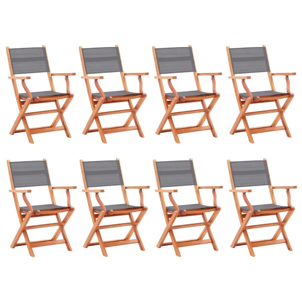 Składane krzesła ogrodowe 8 szt. szare, eukaliptus i textilene