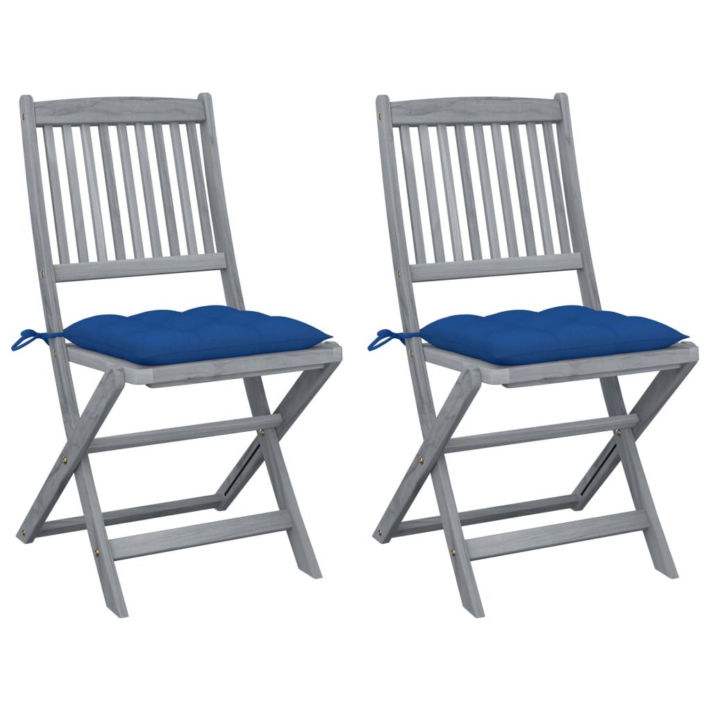 Składane krzesła ogrodowe z poduszkami, 2 szt., akacjowe
