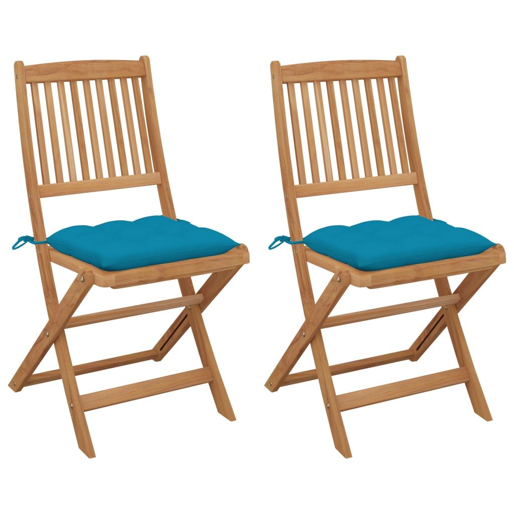Składane krzesła ogrodowe z poduszkami, 2 szt., drewno akacjowe