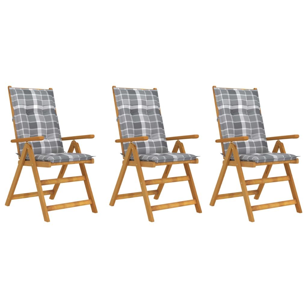 Składane krzesła ogrodowe z poduszkami, 3 szt., drewno akacjowe