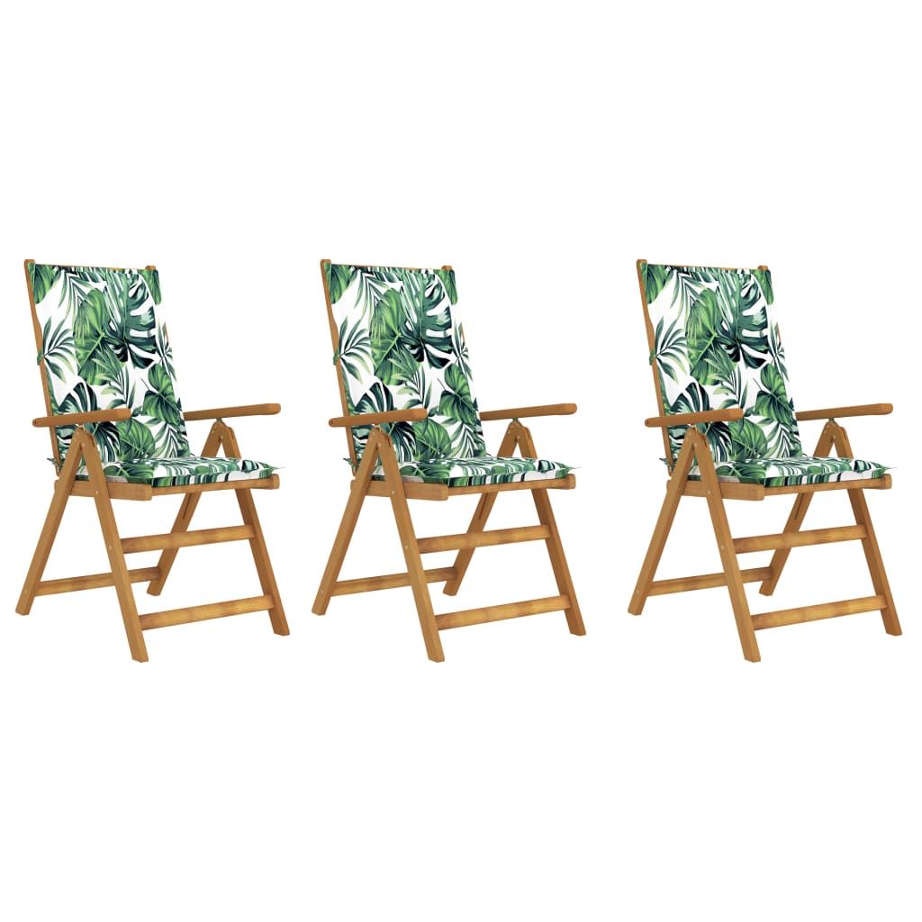 Składane krzesła ogrodowe z poduszkami, 3 szt., drewno akacjowe