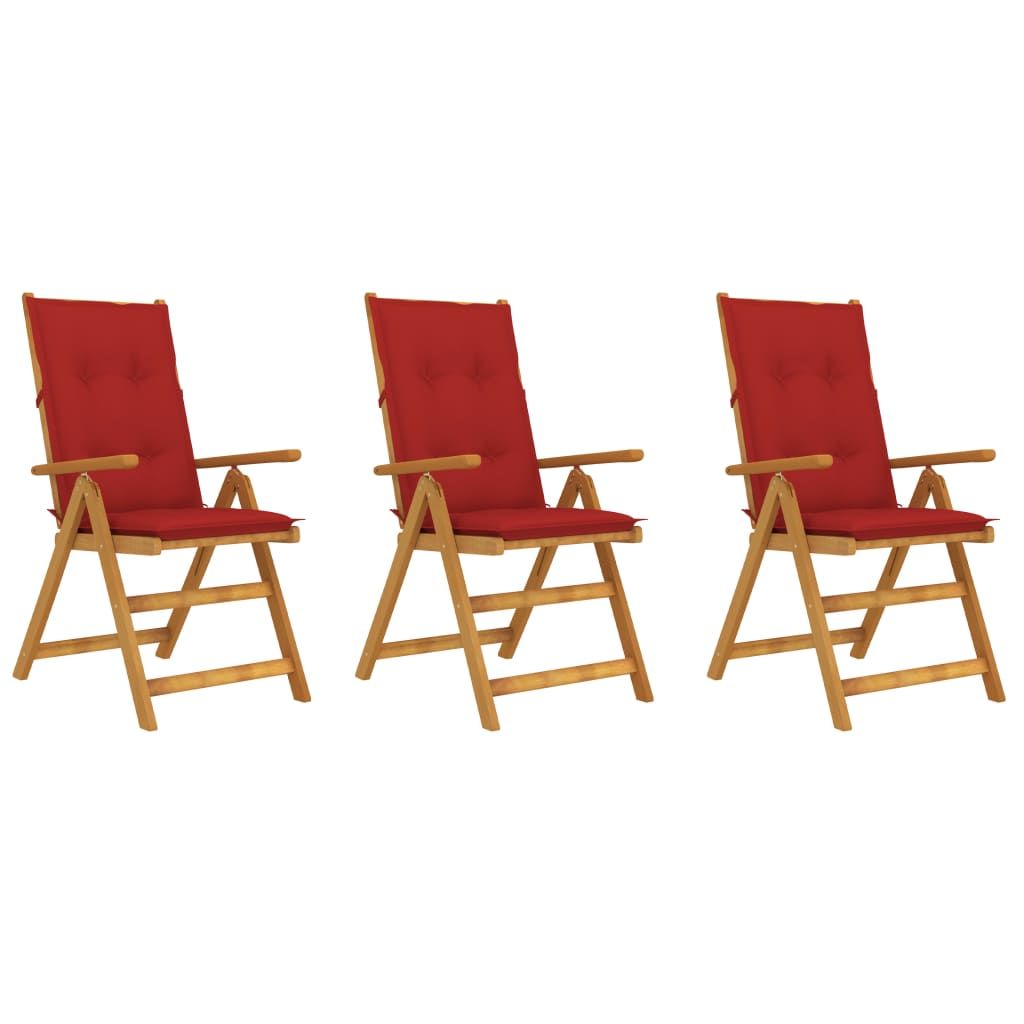 Składane krzesła ogrodowe z poduszkami, 3 szt., drewno akacjowe