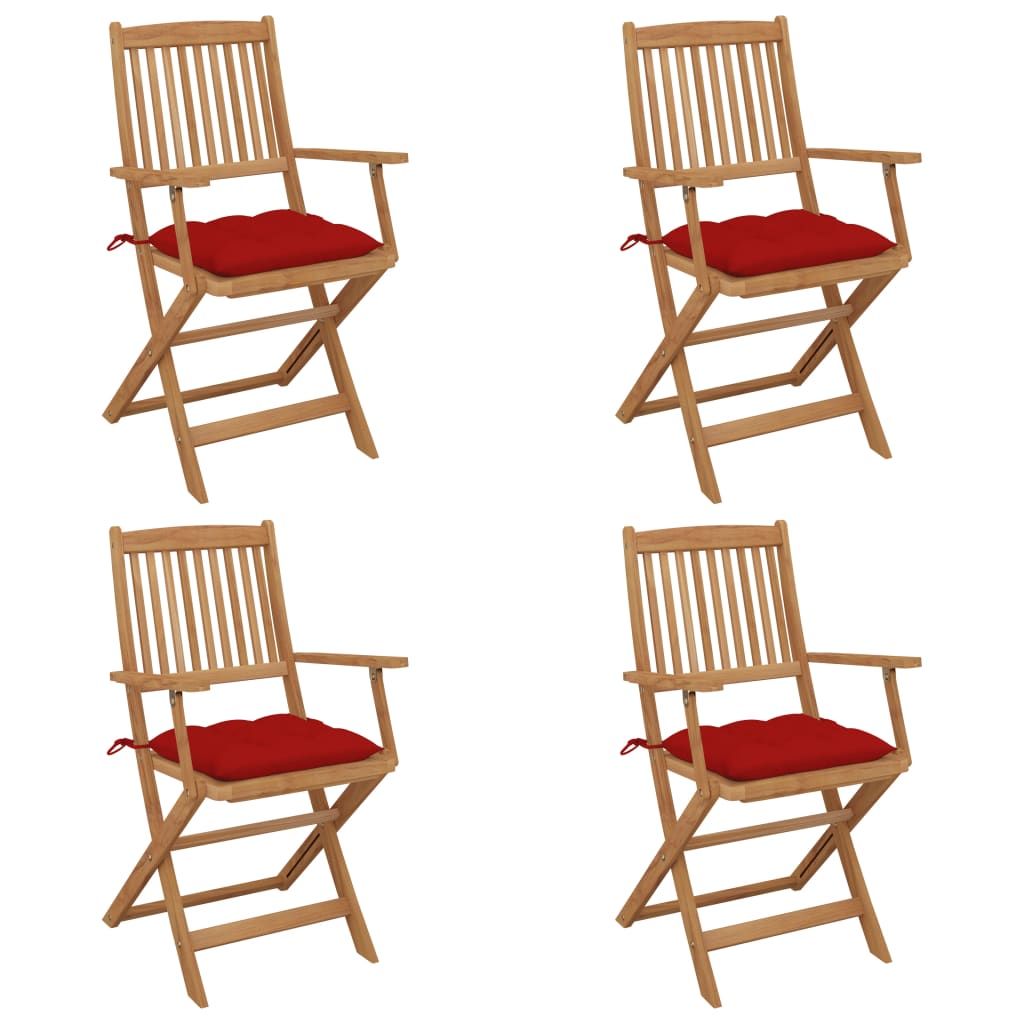 Składane krzesła ogrodowe z poduszkami, 4 szt., drewno akacjowe