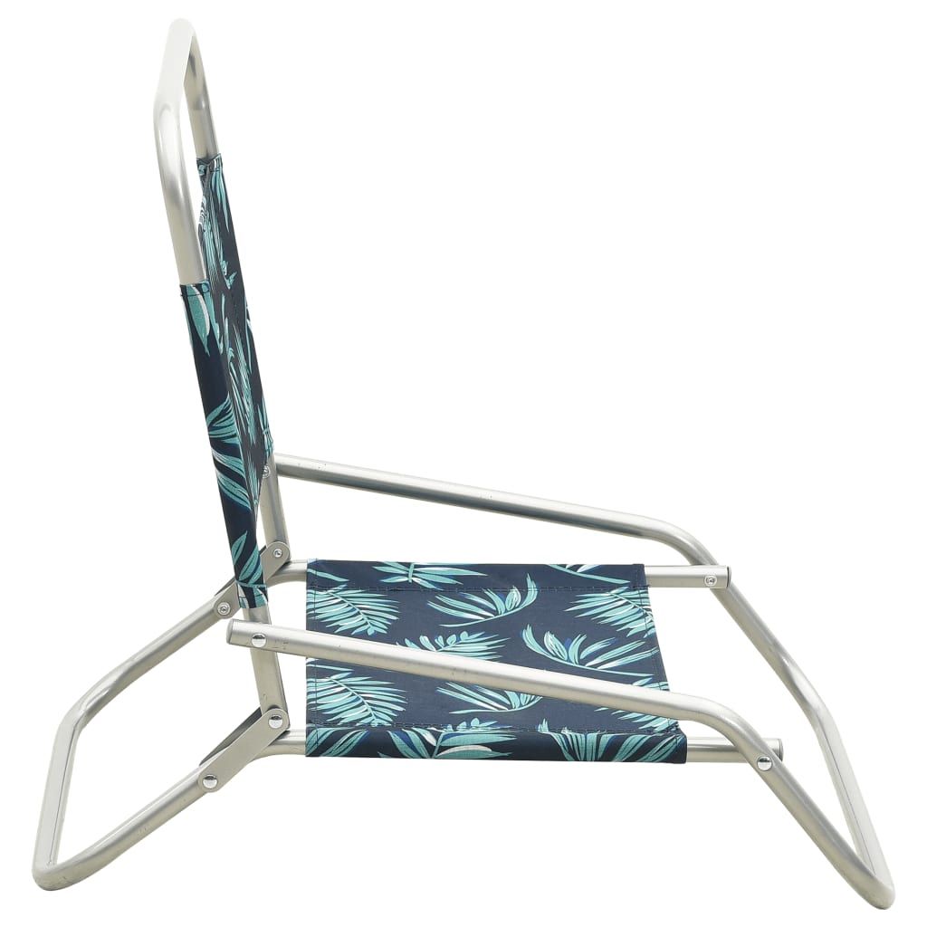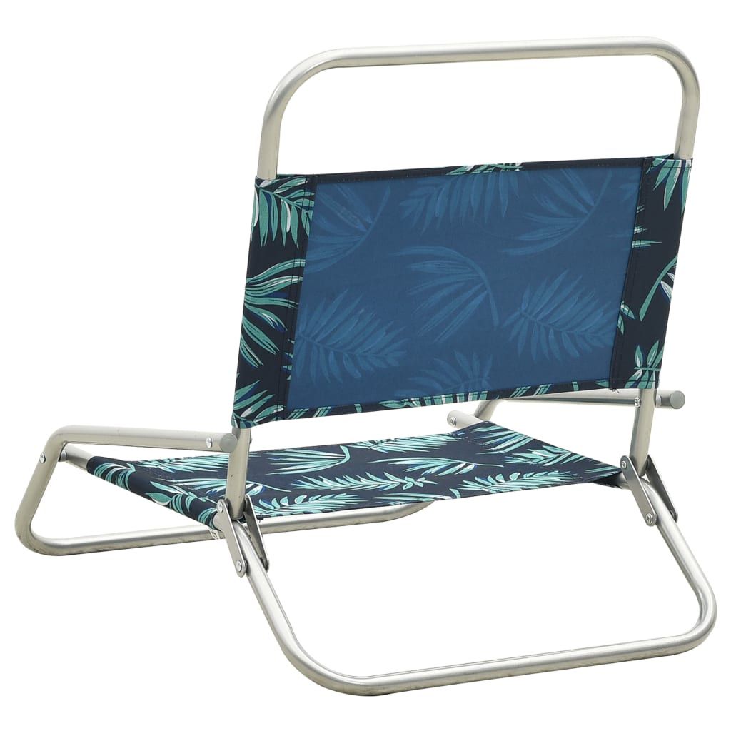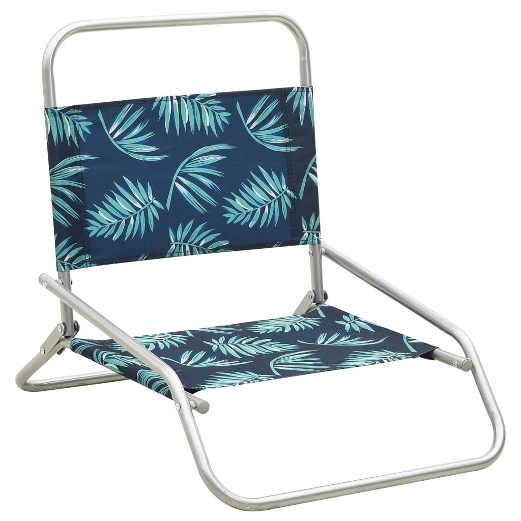 Składane krzesła plażowe, 2 szt., wzór w liście, obite tkaniną