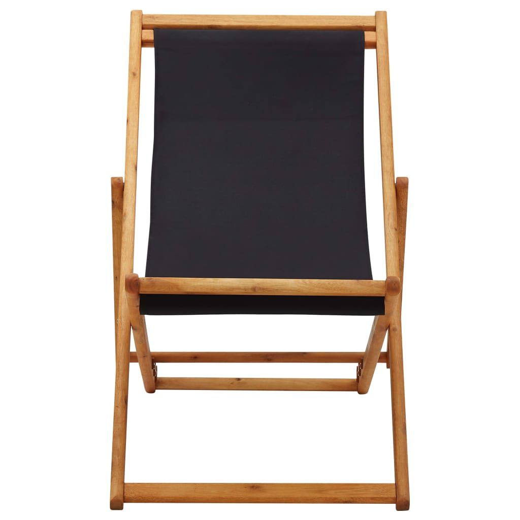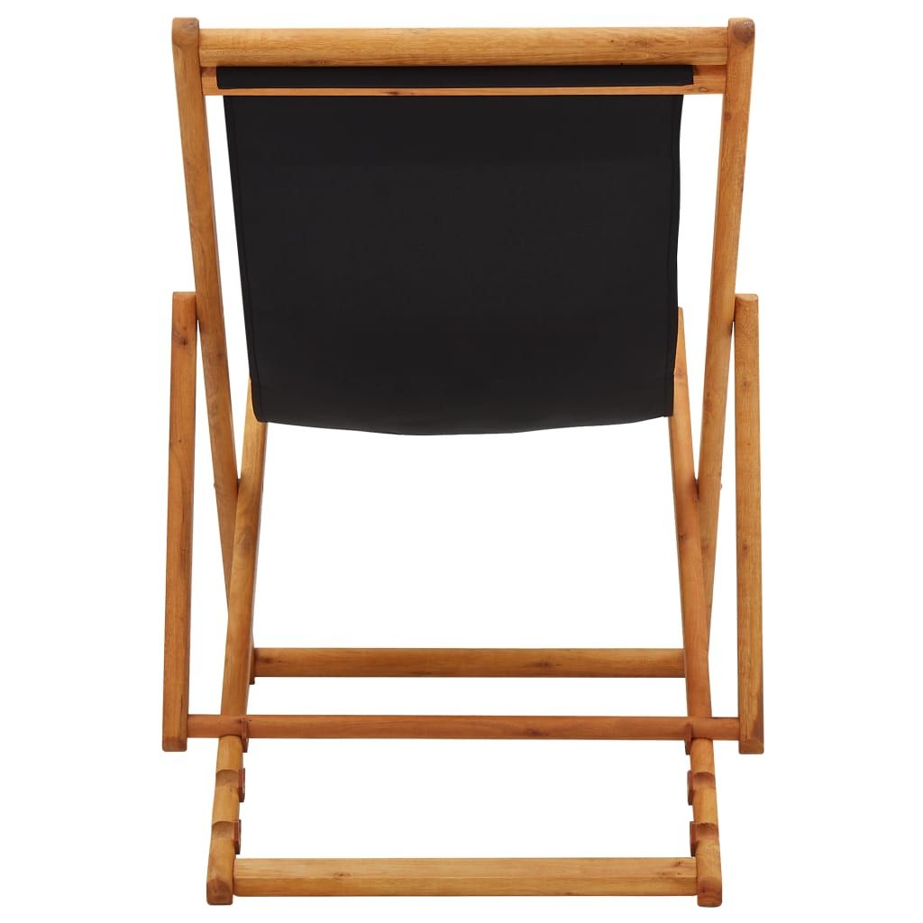 Składany leżak, drewno eukaliptusa i czarna tkanina