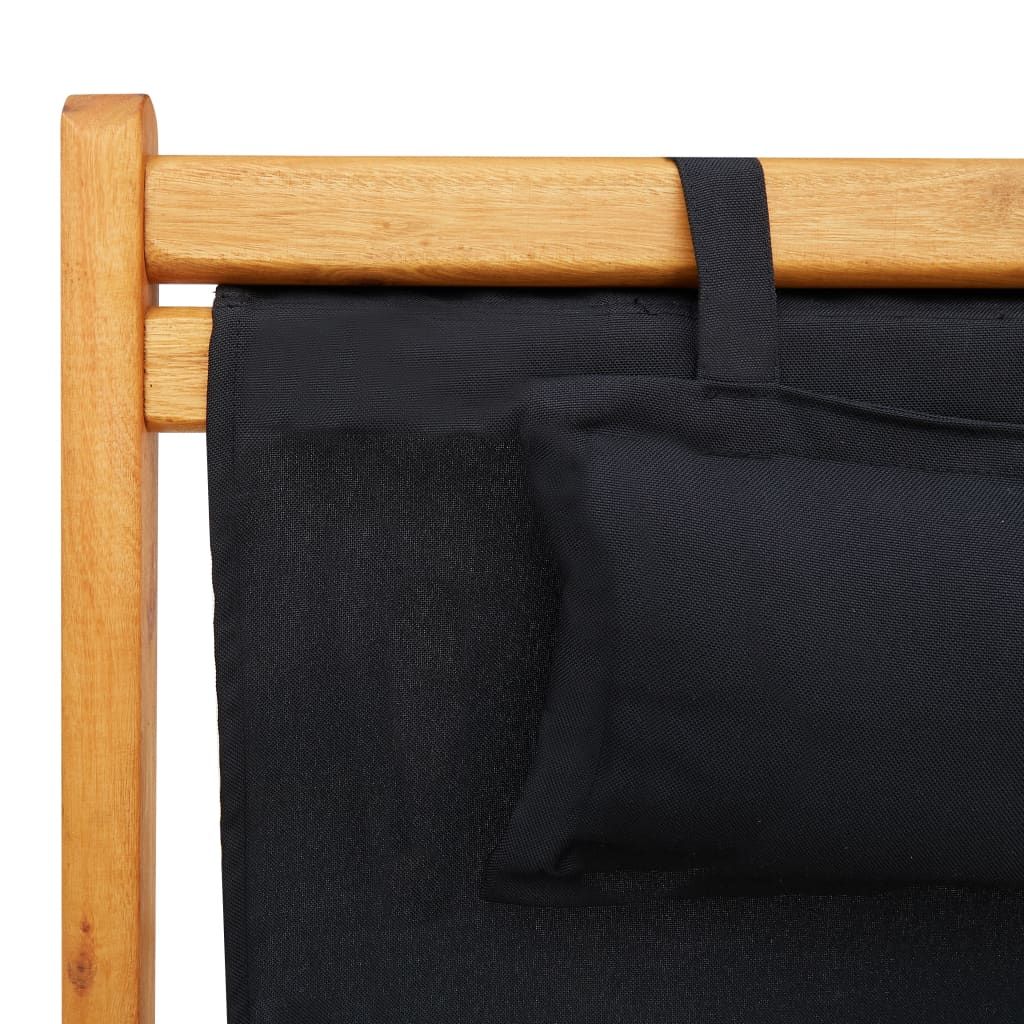 Składany leżak, lite drewno eukaliptusa i czarna tkanina