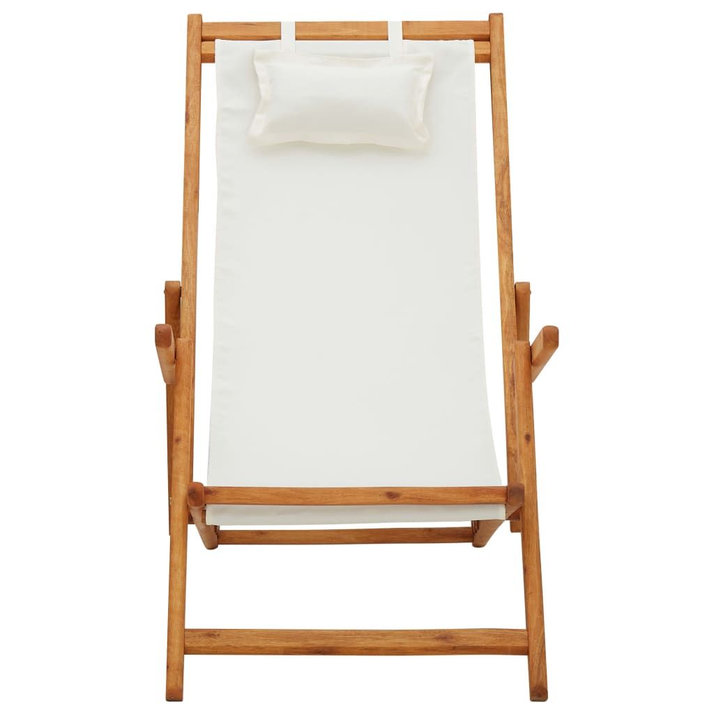 Składany leżak, lite drewno eukaliptusa i kremowa tkanina