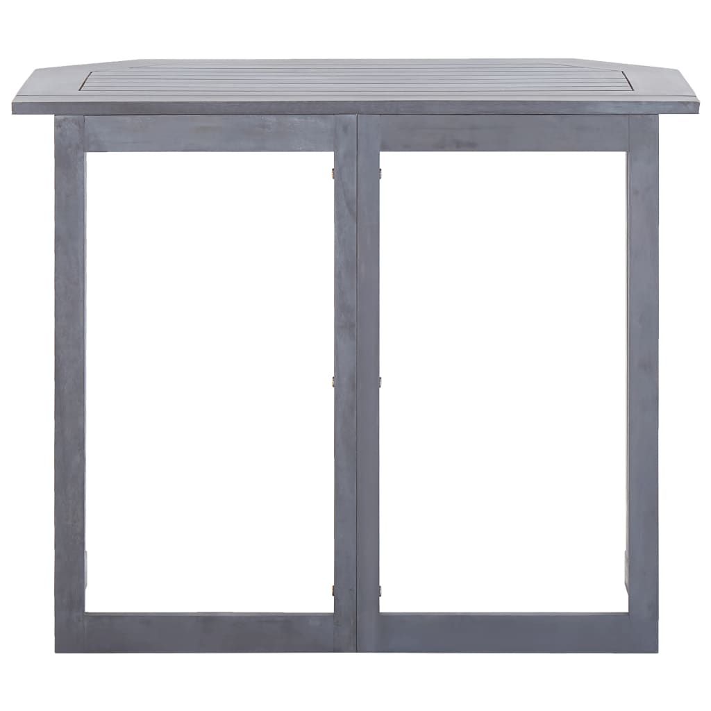 Nasz składany stół balkonowy z drewna roztacza rustykalny czar, stając się doskonałym dodatkiem na Twój balkon, taras lub patio. Sprawdzi się jako stolik kawowy, do postawienia szklanek z napojami lub jako wygodny blat roboczy, na którym rozłożysz narzędzia ogrodnicze i doniczki z roślinami. Wykonany z litego drewna akacjowego z szarym wykończeniem stół ogrodowy jest trwały, łatwy w utrzymaniu i odporny na czynniki atmosferyczne. Stół balkonowy można złożyć, aby zaoszczędzić miejsce, gdy nie jest używany. Ten produkt wymaga montażu. Prosimy mieć na uwadze że drewno jest produktem naturalnym i może wykazywać niedoskonałości.