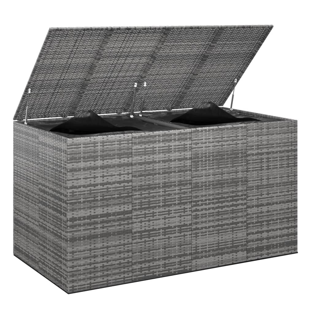 Skrzynia na poduszki ogrodowe, rattan PE, 194x100x103 cm, szara