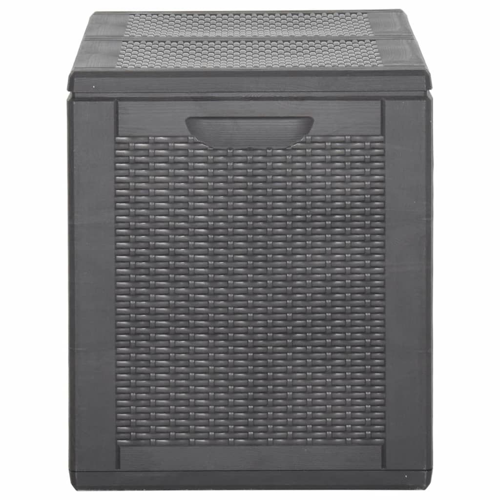 Ten prosty schowek to doskonałe rozwiązanie do uporządkowania ogrodu, patio lub tarasu. Skrzynia do przechowywania wykonana jest w 100% z materiału PP, dzięki czemu jest odporna na warunki atmosferyczne, promieniowanie UV, lekka i łatwa do przenoszenia. Pojemnik do przechowywania w ogrodzie ma nienachalny, ponadczasowy wygląd i doskonale komponuje się z wystrojem wnętrz i na zewnątrz. Ponadto skrzynia ogrodowa zapewnia dużo miejsca do przechowywania poduszek i innych artykułów gospodarstwa domowego lub ogrodowych w zasięgu ręki. Uwaga: aby przedłużyć żywotność mebli ogrodowych, zalecamy ich regularne czyszczenie i niepozostawianie na zewnątrz bez właściwego zabezpieczenia.Czyszczenie: użyj roztworu wody z delikatnym detergentem.Przechowywanie: jeśli to możliwe, przechowuj produkt w chłodnym i suchym miejscu, najlepiej w pomieszczeniu. Jeśli ma być on przechowywany na zewnątrz, należy go zabezpieczyć wodoszczelną osłoną. Po opadach deszczu lub śniegu usuń nadmiar wody lub śniegu z płaskich powierzchni i osusz je. Zapewnij wystarczającą cyrkulację powietrza, aby uniknąć uszkodzeń spowodowanych wilgocią.
