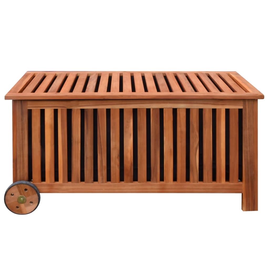 Drewniana, odporna na działanie wody skrzynia zapewni doskonałe miejsce do przechowania koców, poduszek i innych akcesoriów znajdujących się latem w ogrodzie, na balkonie czy tarasie. Dzięki wykonaniu z wysokiej jakości impregnowanego drewna skrzynia do przechowywania jest łatwa do czyszczenia, solidna i odpowiednia do codziennego użytku. Odporne na działanie wody wykończenie olejem i wewnętrzna wodoodporna wyściółką chronią przed wilgocią. Posiada ona 2 koła i uchwyt z jednej strony, które ułatwiają transport i przenoszenie. Poręczna i uniwersalna skrzynia do przechowywania będzie idealnym dodatkiem wewnątrz i na zewnątrz domu.