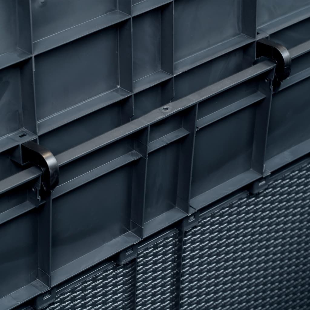 Ta stylowa skrzynia stanowi idealne rozwiązanie do przechowywania przedmiotów z Twojego domu. Zachowaj porządek, przechowując poduszki, koce, zabawki i inne przedmioty, poza zasięgiem wzroku. Może być również używana jako skrzynka narzędziowa dzięki swojej solidnej konstrukcji. Skrzynia zbudowana została z wytrzymałego, odpornego na warunki atmosferyczne tworzywa sztucznego, dzięki czemu jest idealna do użytku wewnątrz i na zewnątrz. Prosty, ale klasyczny wygląd sprawia, że skrzynia ogrodowa będzie pasować do każdego wystroju wnętrz. Montaż skrzyni jest łatwy.