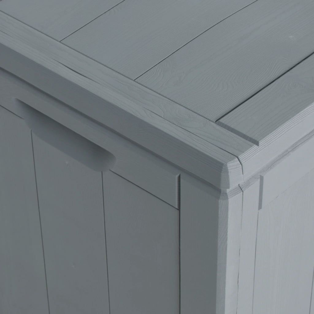 Ten prosty schowek to doskonałe rozwiązanie do uporządkowania ogrodu, patio lub tarasu. Skrzynia do przechowywania wykonana jest w 100% z materiału PP, dzięki czemu jest odporna na warunki atmosferyczne, promieniowanie UV, lekka i łatwa do przenoszenia. Pojemnik do przechowywania w ogrodzie ma nienachalny, ponadczasowy wygląd i doskonale komponuje się z wystrojem wnętrz i na zewnątrz. Ponadto skrzynia ogrodowa zapewnia dużo miejsca do przechowywania poduszek i innych artykułów gospodarstwa domowego lub ogrodowych w zasięgu ręki. Uwaga: aby przedłużyć żywotność mebli ogrodowych, zalecamy ich regularne czyszczenie i niepozostawianie na zewnątrz bez właściwego zabezpieczenia.Czyszczenie: użyj roztworu wody z delikatnym detergentem.Przechowywanie: jeśli to możliwe, przechowuj produkt w chłodnym i suchym miejscu, najlepiej w pomieszczeniu. Jeśli ma być on przechowywany na zewnątrz, należy go zabezpieczyć wodoszczelną osłoną. Po opadach deszczu lub śniegu usuń nadmiar wody lub śniegu z płaskich powierzchni i osusz je. Zapewnij wystarczającą cyrkulację powietrza, aby uniknąć uszkodzeń spowodowanych wilgocią.