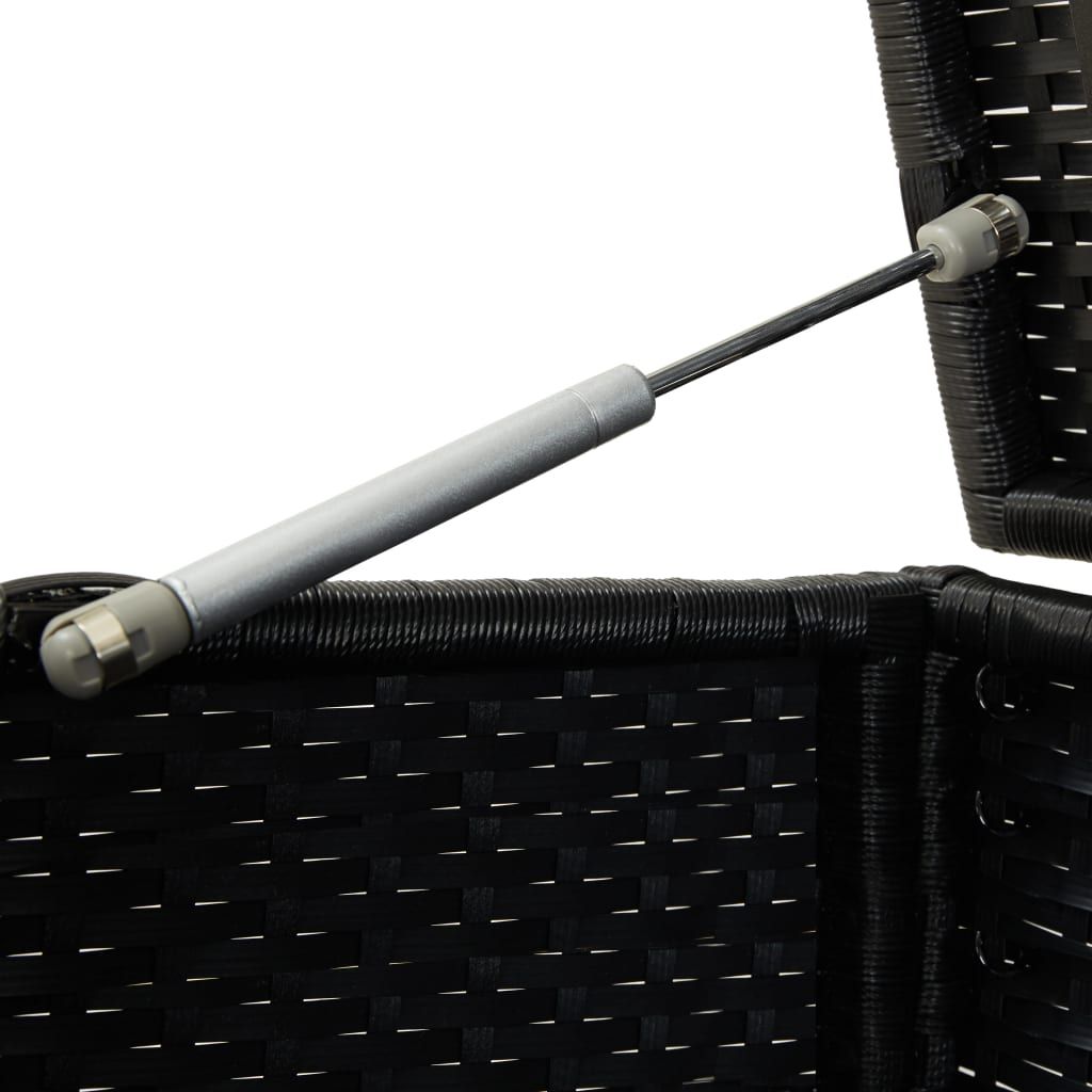 Opis produktu: Poszukujesz atrakcyjnego i uniwersalnego schowka do ogrodu? Nasza polirattanowa skrzynia jest idealnym wyborem dla Ciebie! Ta przestronna skrzynia zapewnia wystarczającą ilość miejsca do przechowywania akcesoriów ogrodowych, takich jak poduszki na meble, dodatkowe koce, zabawki do basenu i sprzęty do ogrodu. Składa się ona z malowanej proszkowo, stalowej ramy i ręcznie wyplatanego polirattanu, który jest trwały oraz odporny na rdzewienie i czynniki pogodowe przez lata użytkowania. Wyściełanie ochroni zawartość przed kurzem i wilgocią. Dzięki wyższym nóżkom skrzynia ta zapewnia odpowiedni przepływ powietrza pod spodem, utrzymując wnętrze w suchości i czystości. Co więcej, podnośnik gazowy pozwala podnieść pokrywę bez wysiłku. Mebel ten można łatwo wyczyścić przy pomocy wilgotnej ściereczki. Montaż skrzyni jest łatwy. Uwaga: zalecamy przykrywanie skrzyni wodoszczelną tkaniną/materiałem, aby zapobiec przedostawaniu się wody do wnętrza w przypadku opadów deszczu.