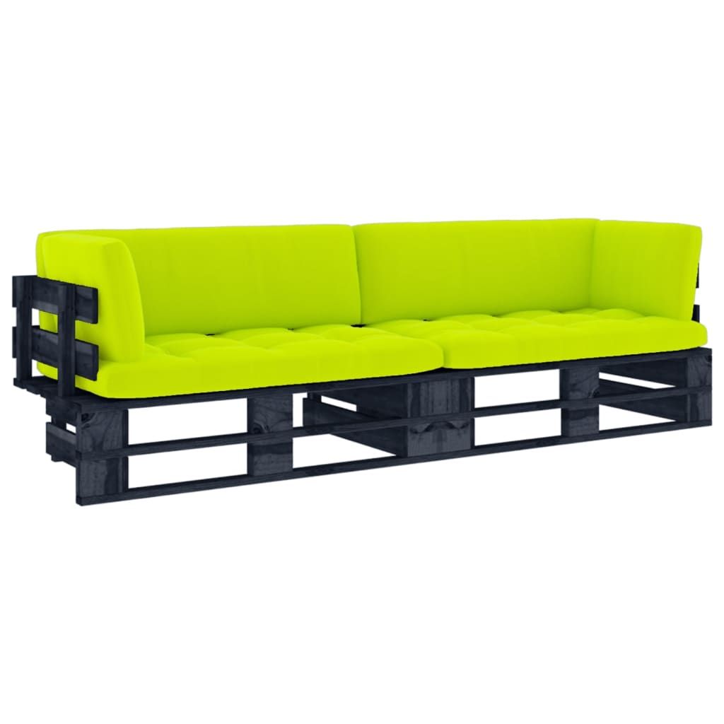 Sofa 2-osobowa z palet, z poduszkami, czarna, drewno sosnowe