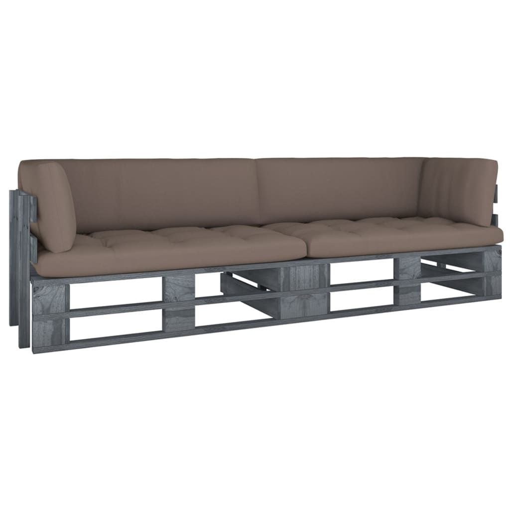 Sofa 2-osobowa z palet, z poduszkami, szara, drewno sosnowe