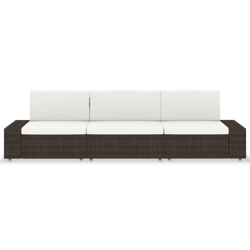 Sofa modułowa 3-osobowa, rattan PE, brązowa