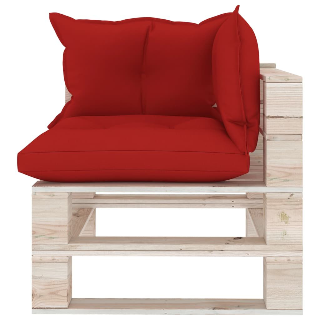 Sofa narożna z palet, z poduszkami, drewno sosnowe