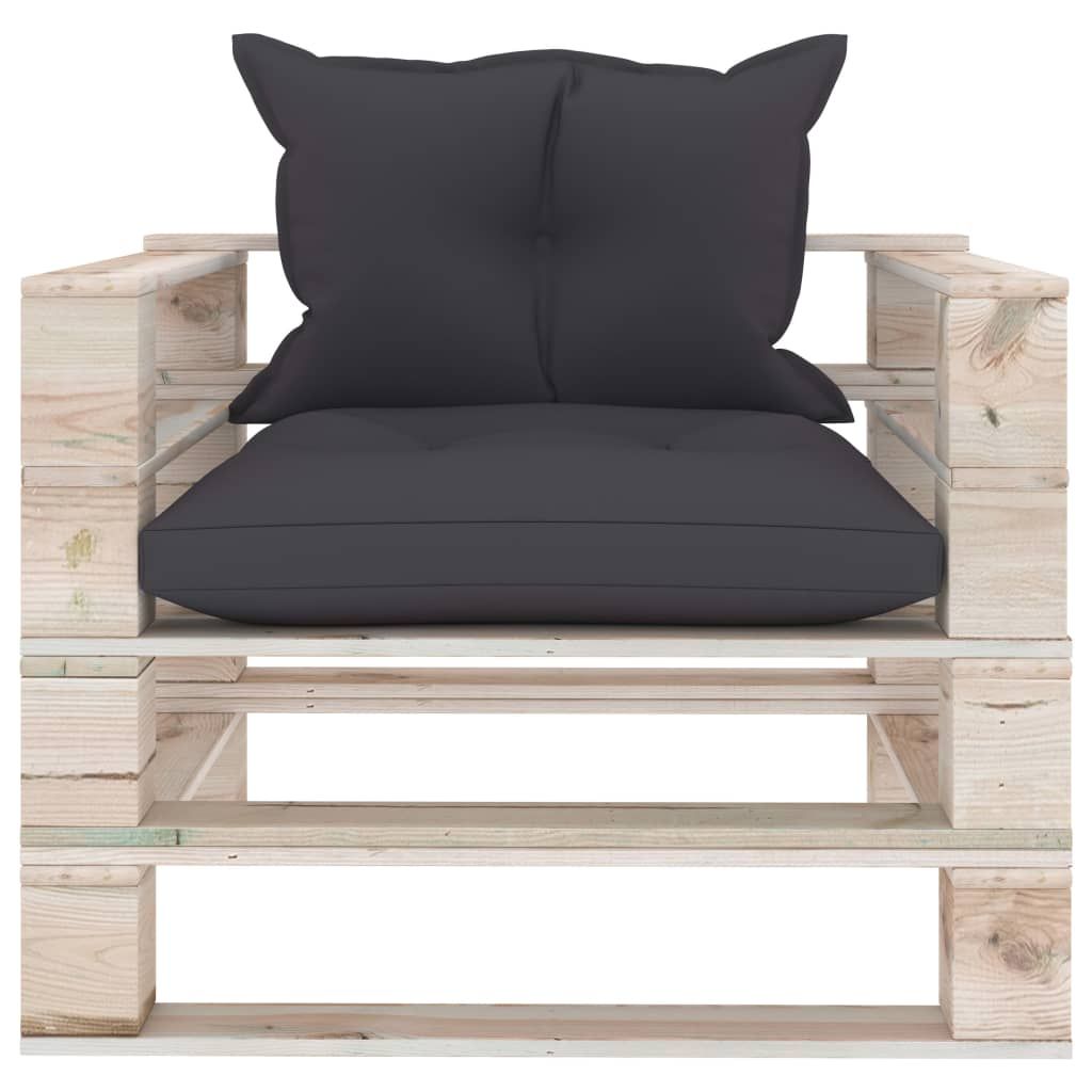 Sofa ogrodowa z palet, antracytowe poduszki, drewno sosnowe