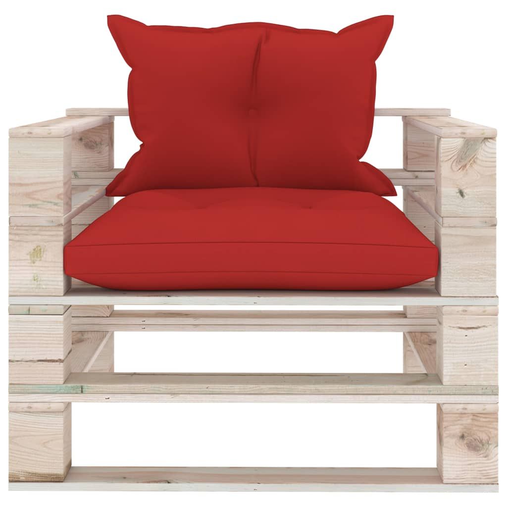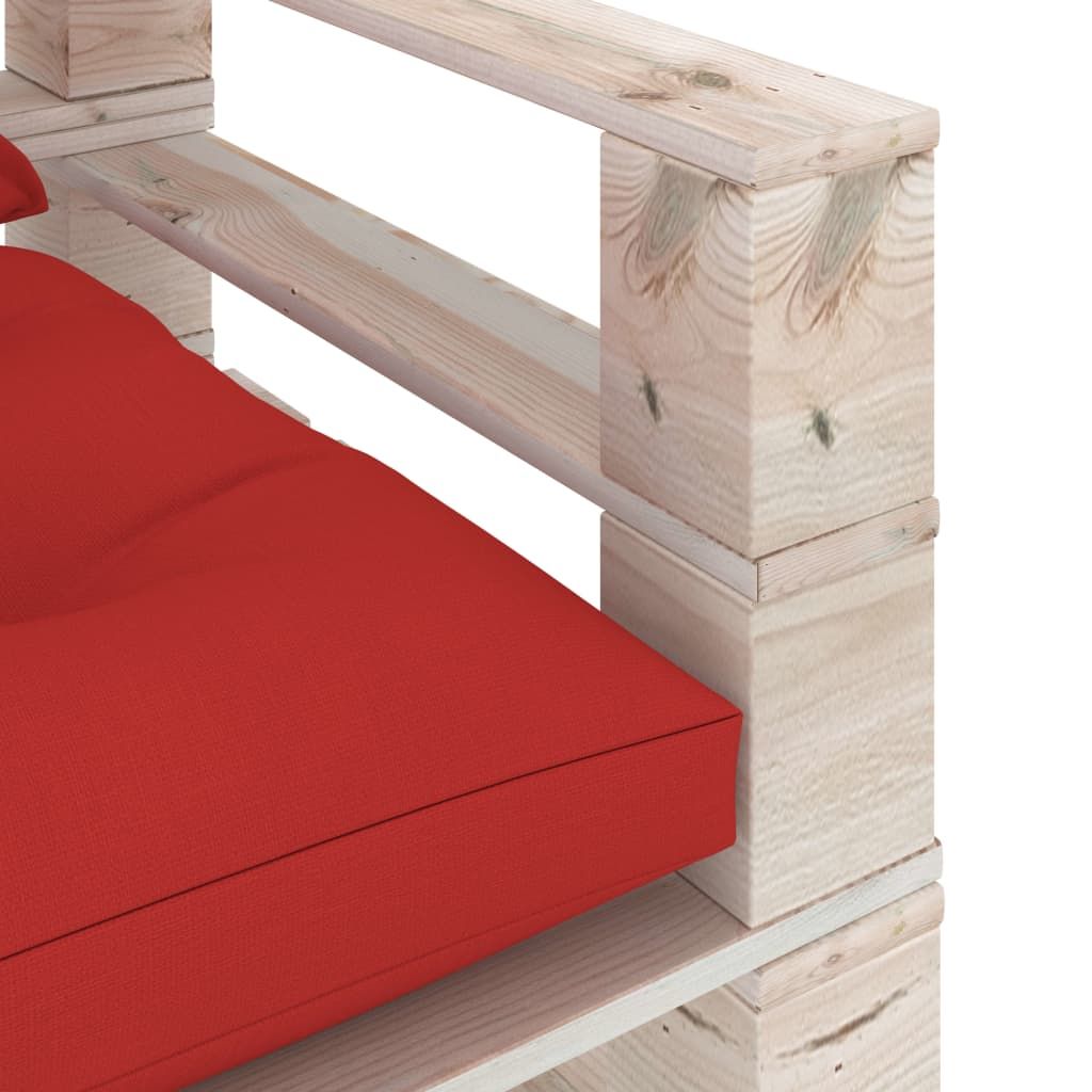 Sofa ogrodowa z palet, czerwone poduszki, drewno sosnowe